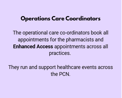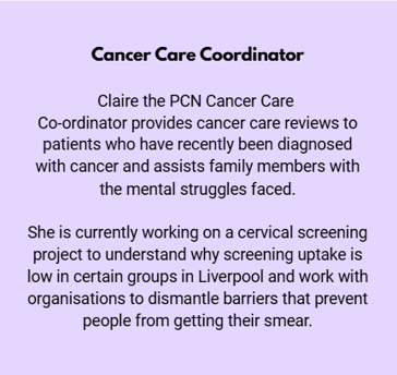 Picton PCN care coordinator's assist with the different teams across the PCN by booking appointments and running health events dependant on their speciality. Events ran by the PCN are hosted by the care coordinators where healthcare information and healthcare checks are provided.